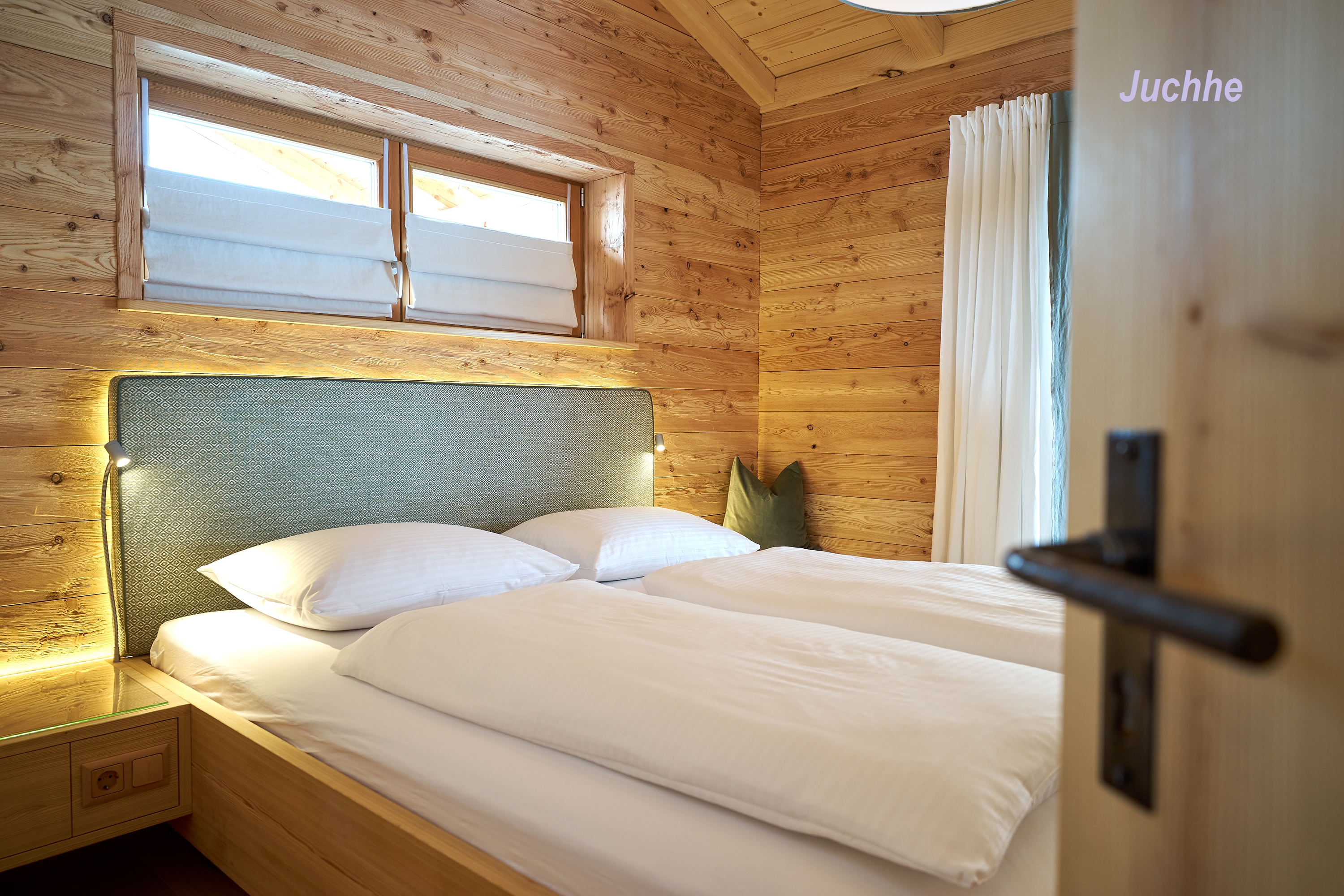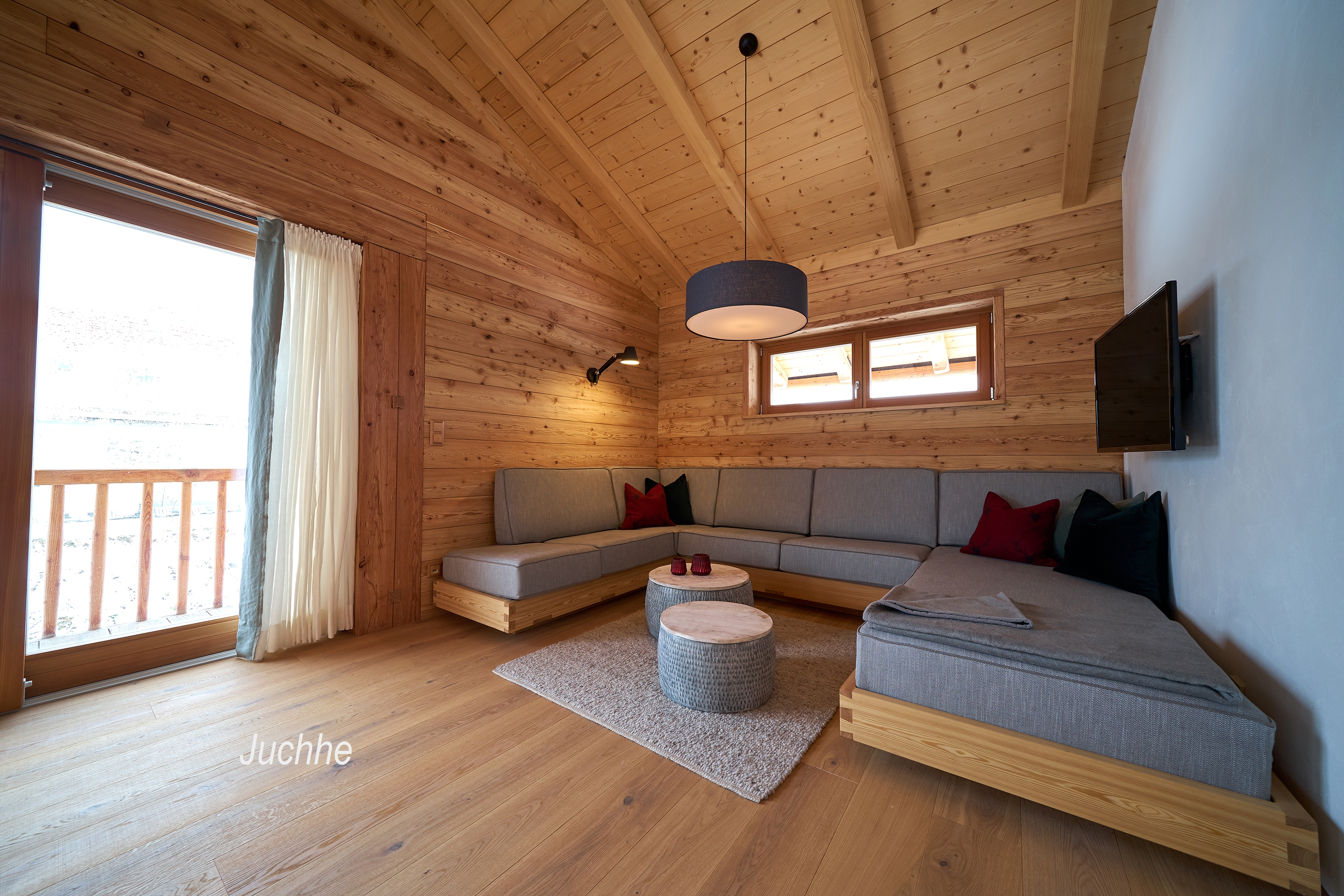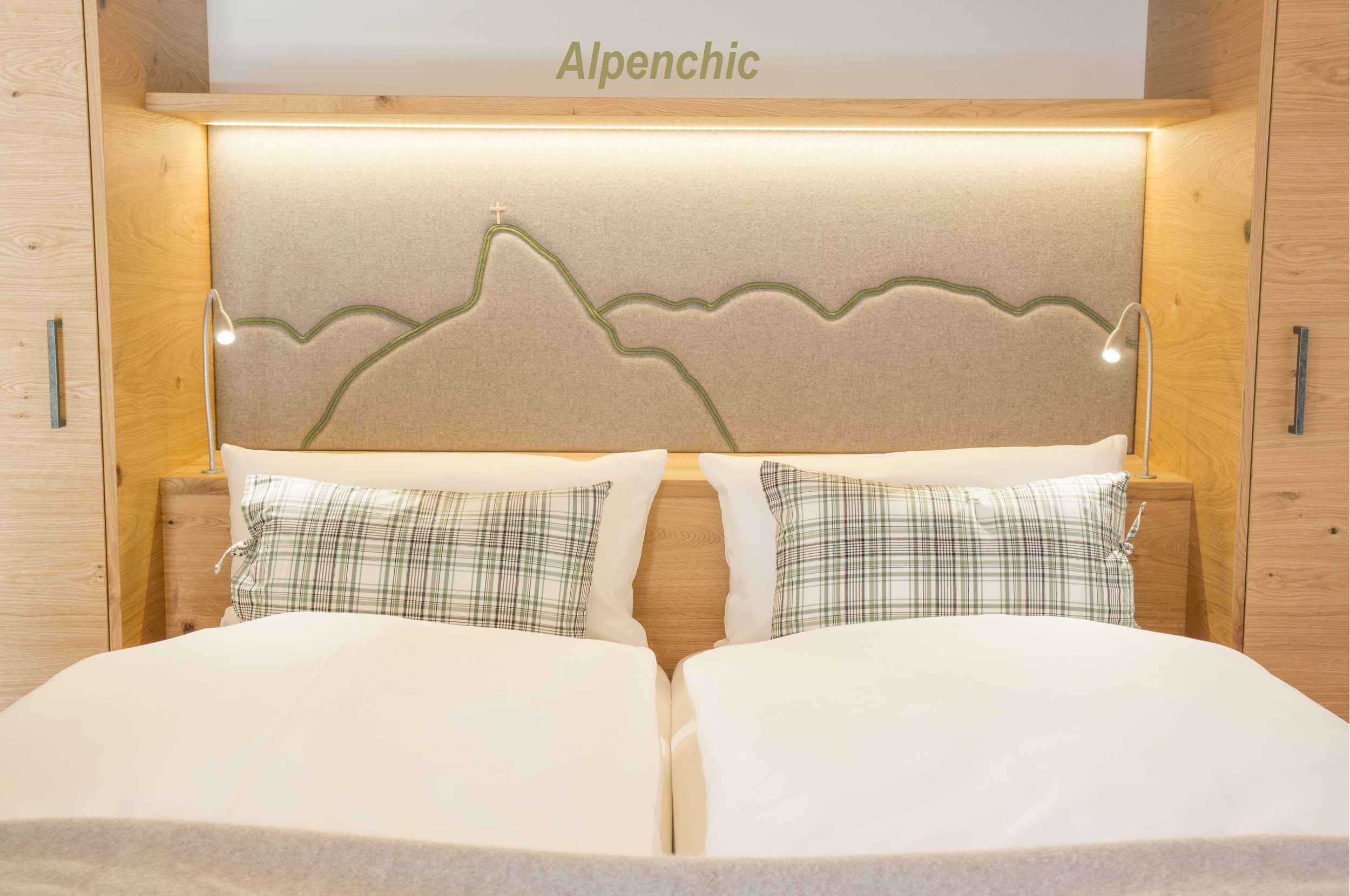 Jede Wohnung wurde liebevoll mit handgefertigten Holzmöbeln und naturbelassenen Materialien im modernen alpenländischen Stil eingerichtet.